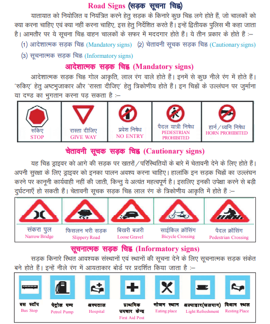 यातायात सुरक्षा कक्षा 8 हिंदी